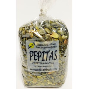 Pepitas are shelled pumpkin seeds, roasted and salted. These are a delicious, healthy snack full of nutrients!